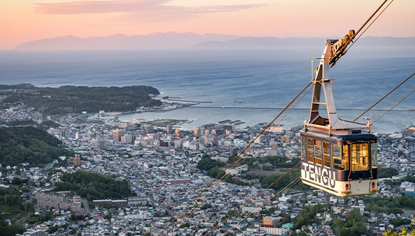 小樽は、歴史ある運河と石造りの倉庫群が美しく並ぶ、北海道を代表する港町です。最寄りの空港は新千歳空港で、電車で約1時間半とアクセスも良好。街中にはガラス工芸やオルゴールの店が立ち並び、新鮮な海鮮グルメも豊富で、食と街歩きをゆっくり楽しめる観光地です。