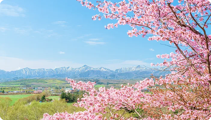 雪解けが進み、広大な自然が春の訪れを感じさせる季節。桜は本州より遅く、4月下旬〜5月上旬に見頃を迎えるため、春休み後半の旅行にも適しています。海の幸や大地の恵みを味わえるグルメ、温泉、雄大な景色を一度に楽しめるのも魅力で、のんびりとした春旅を満喫できます。