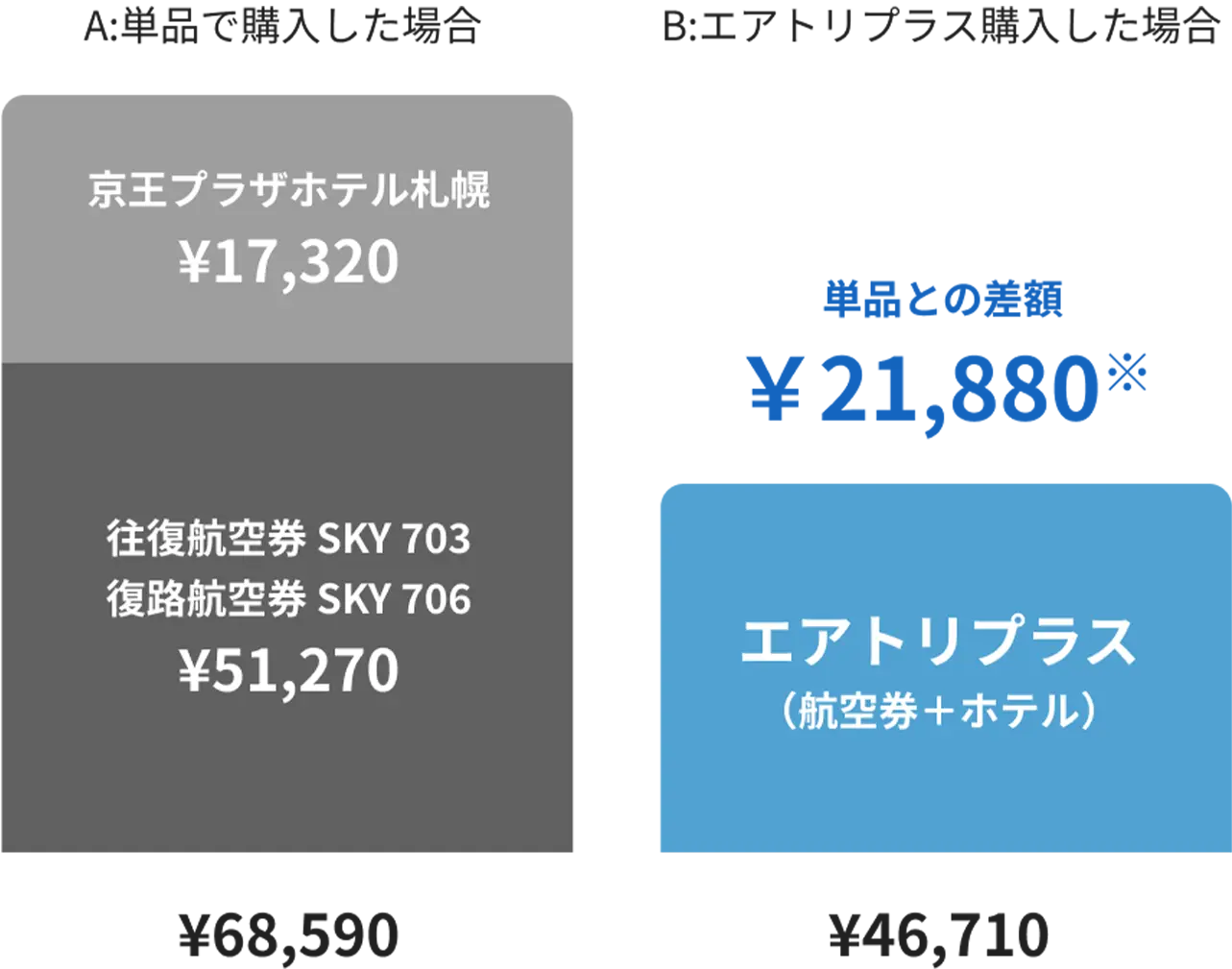 エアトリプラスなら自由な組合せで最安値比較が可能!